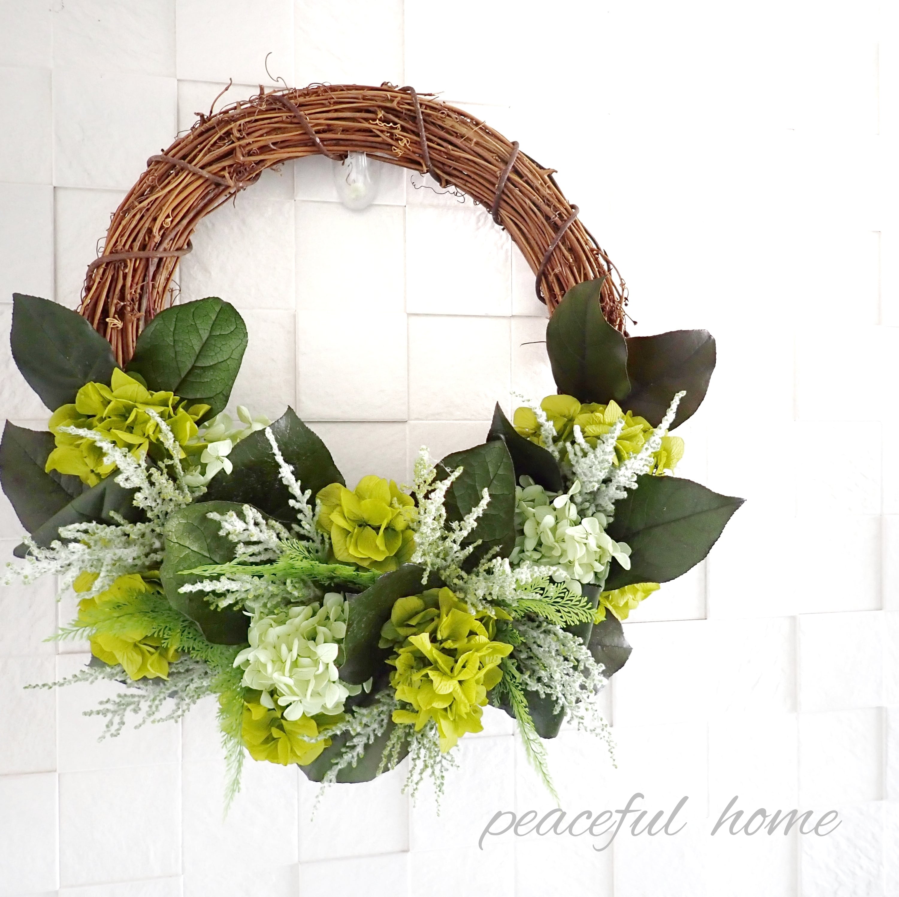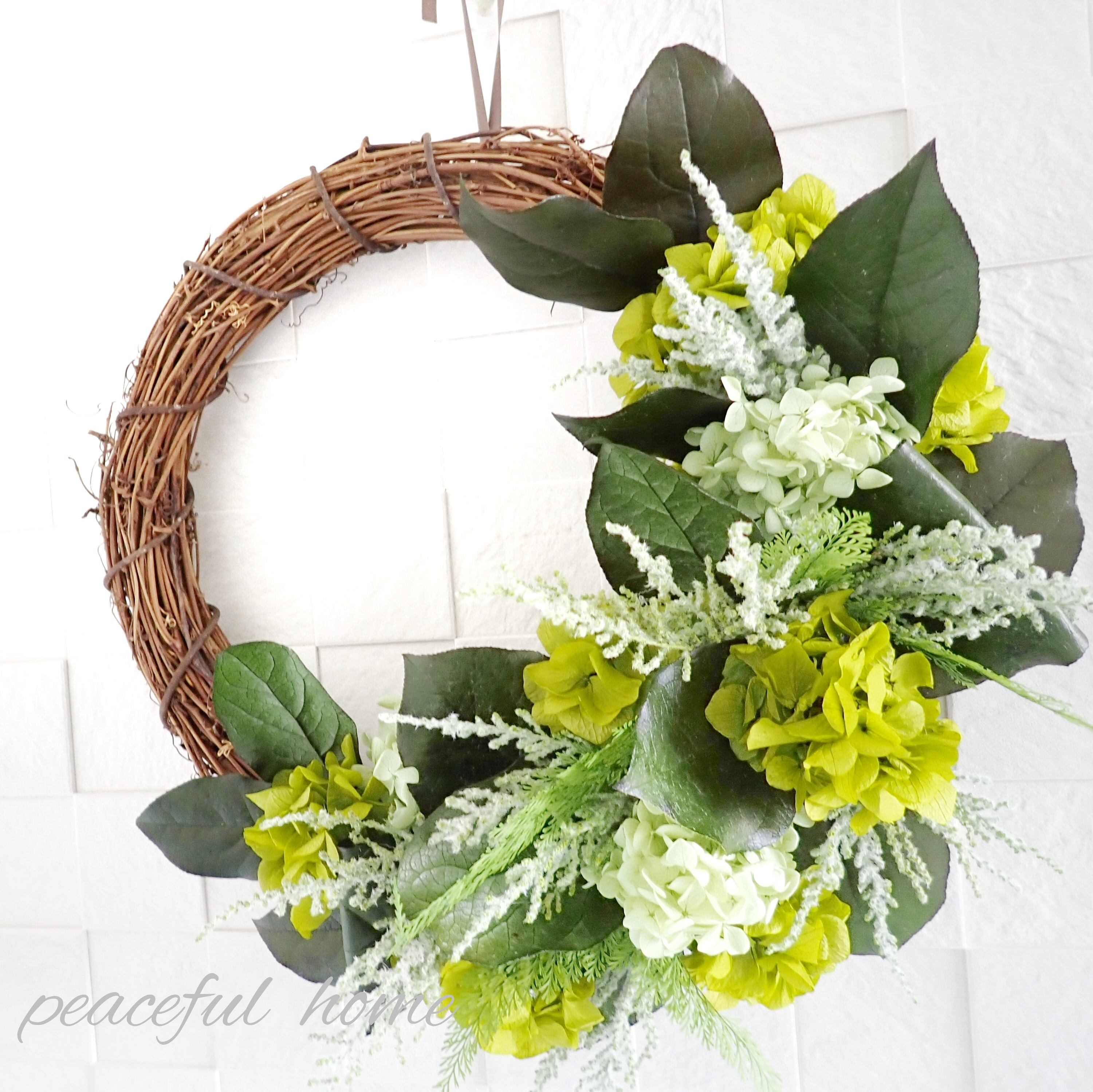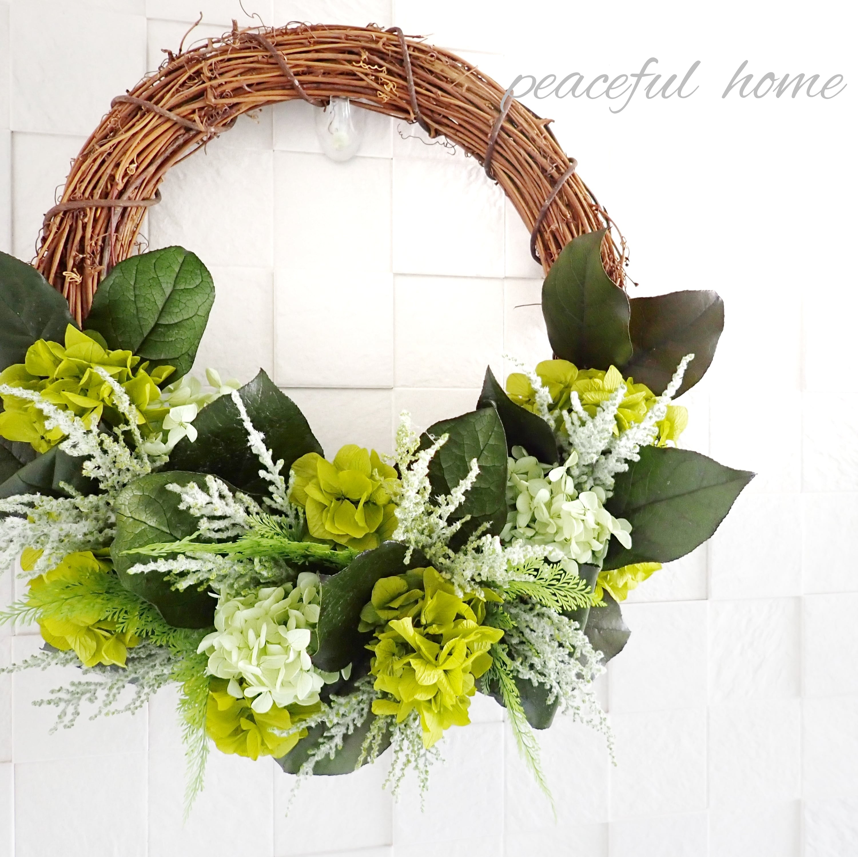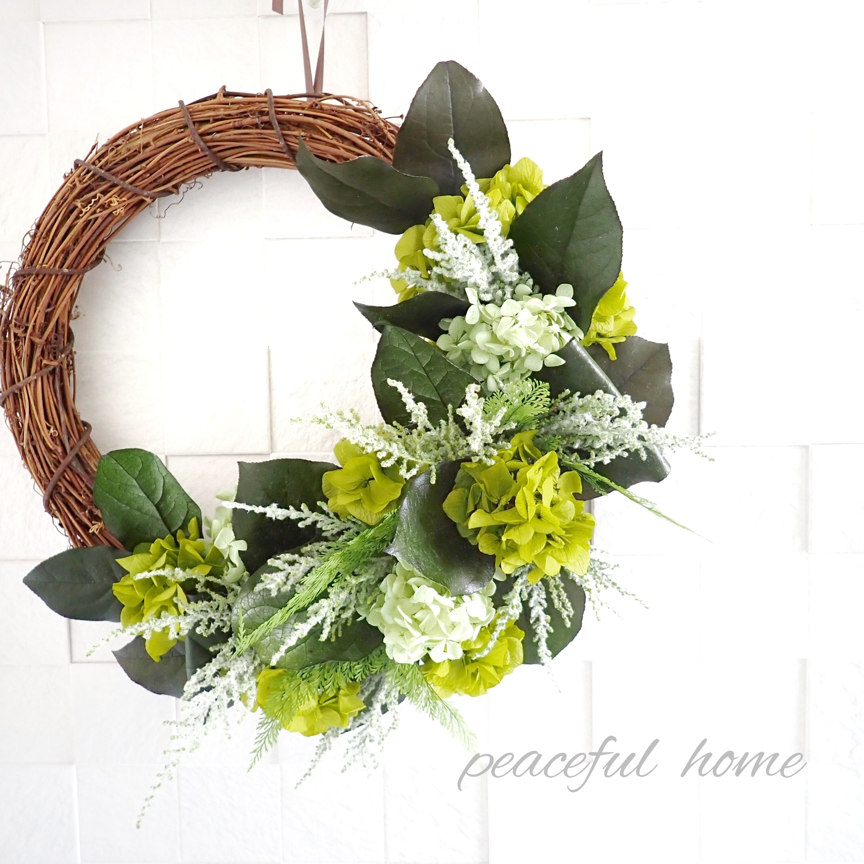 プリザーブドフラワー シンプルグリーンのハーフ リースL 直径約35cm