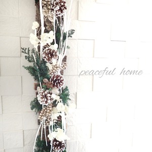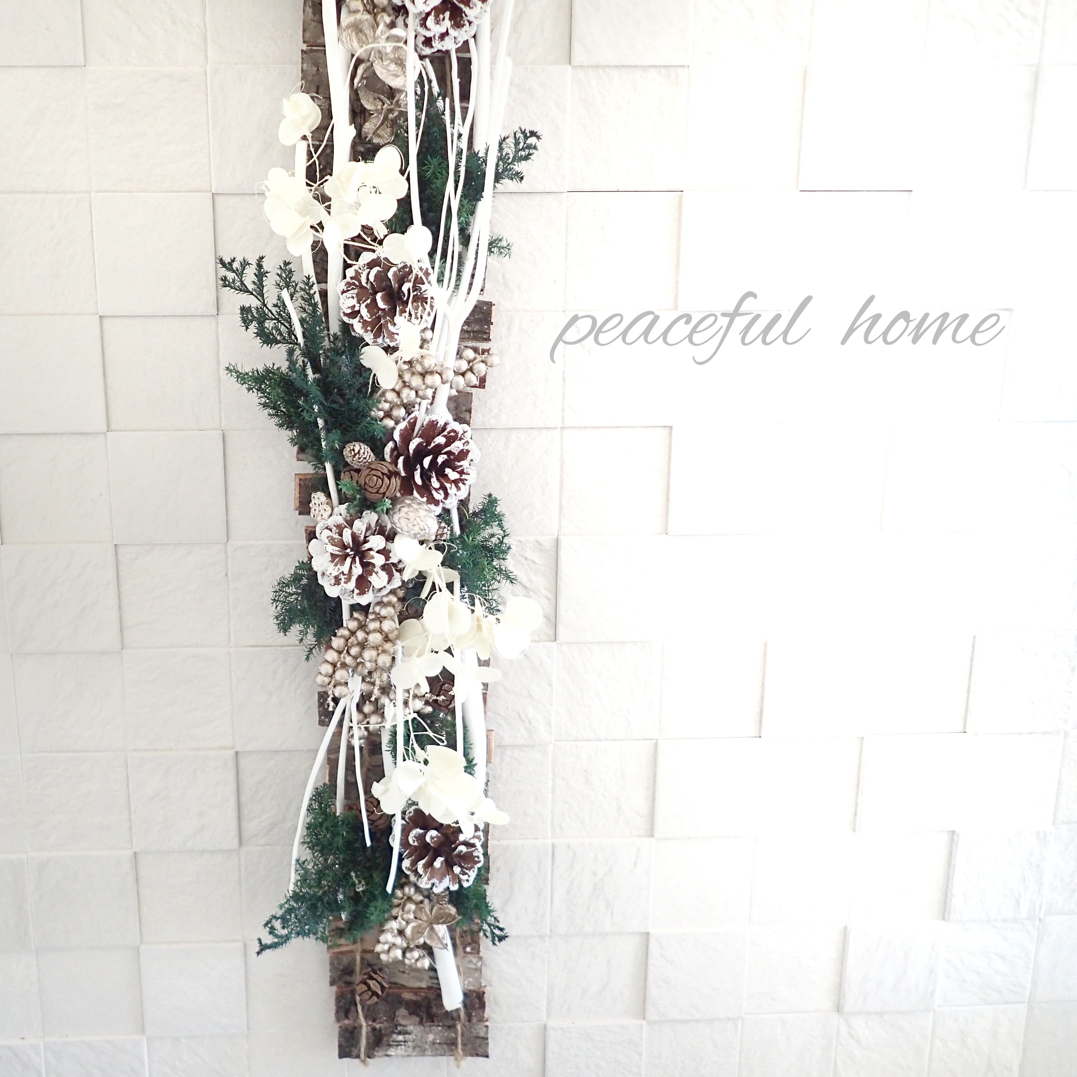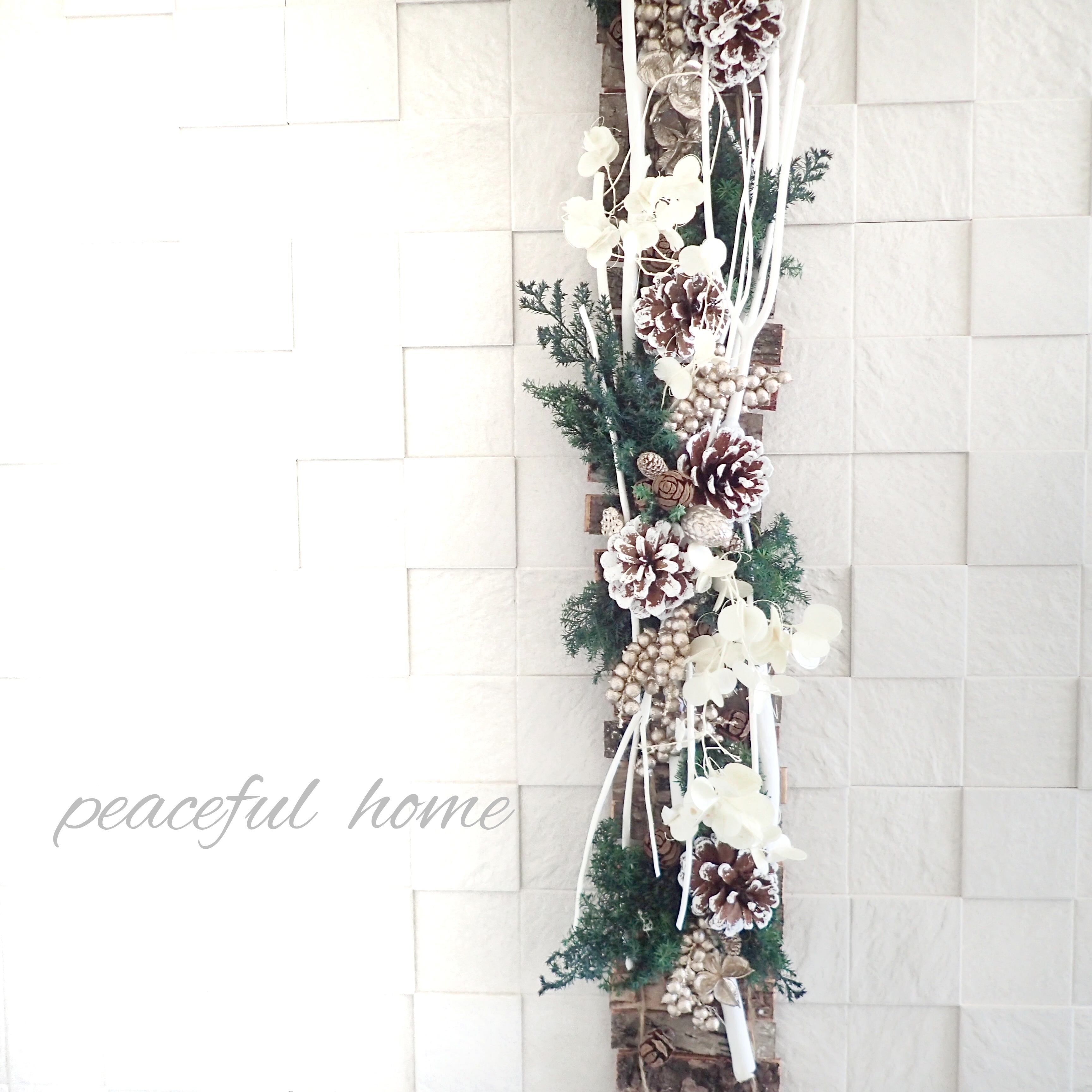 長さ約65cmの白樺タペストリーに、白枝、松かさなどの実物をメインに、プリザーブドの針葉樹をあしらった、ナチュラル感あふれるデザインで、ウィンターシーズンにおすすめです。