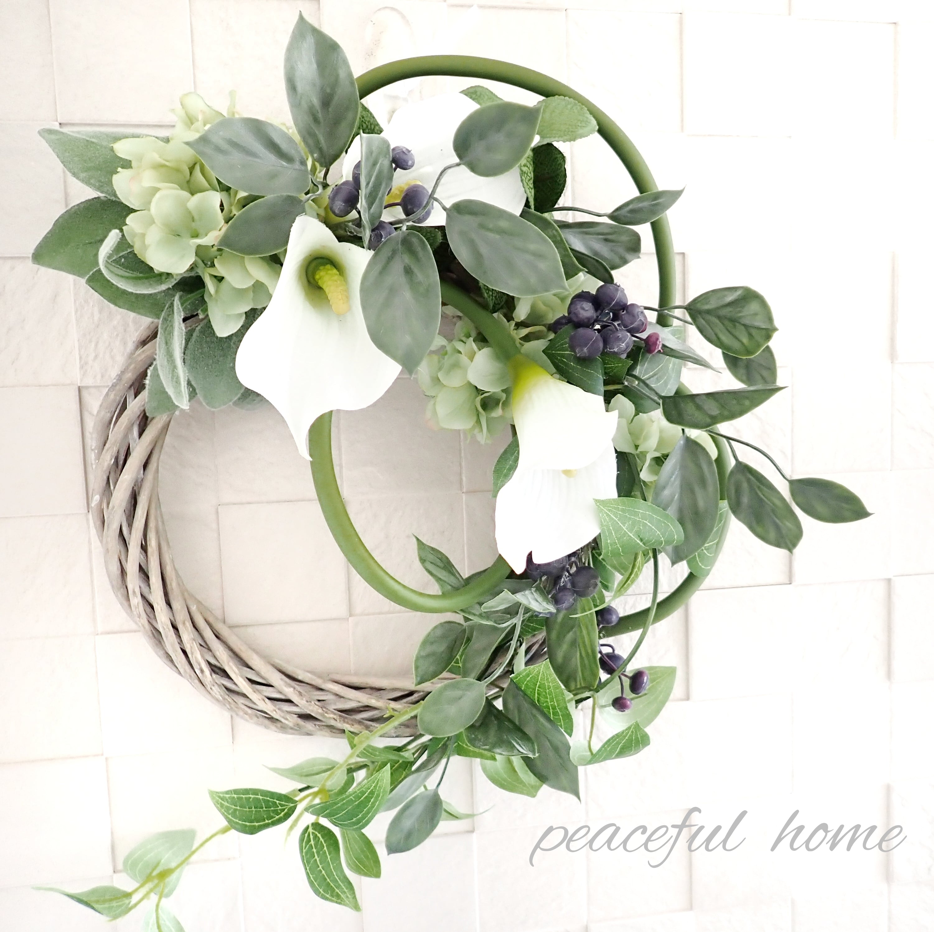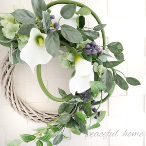 アーティフィシャルフラワー カラーとブルーベリーのリース