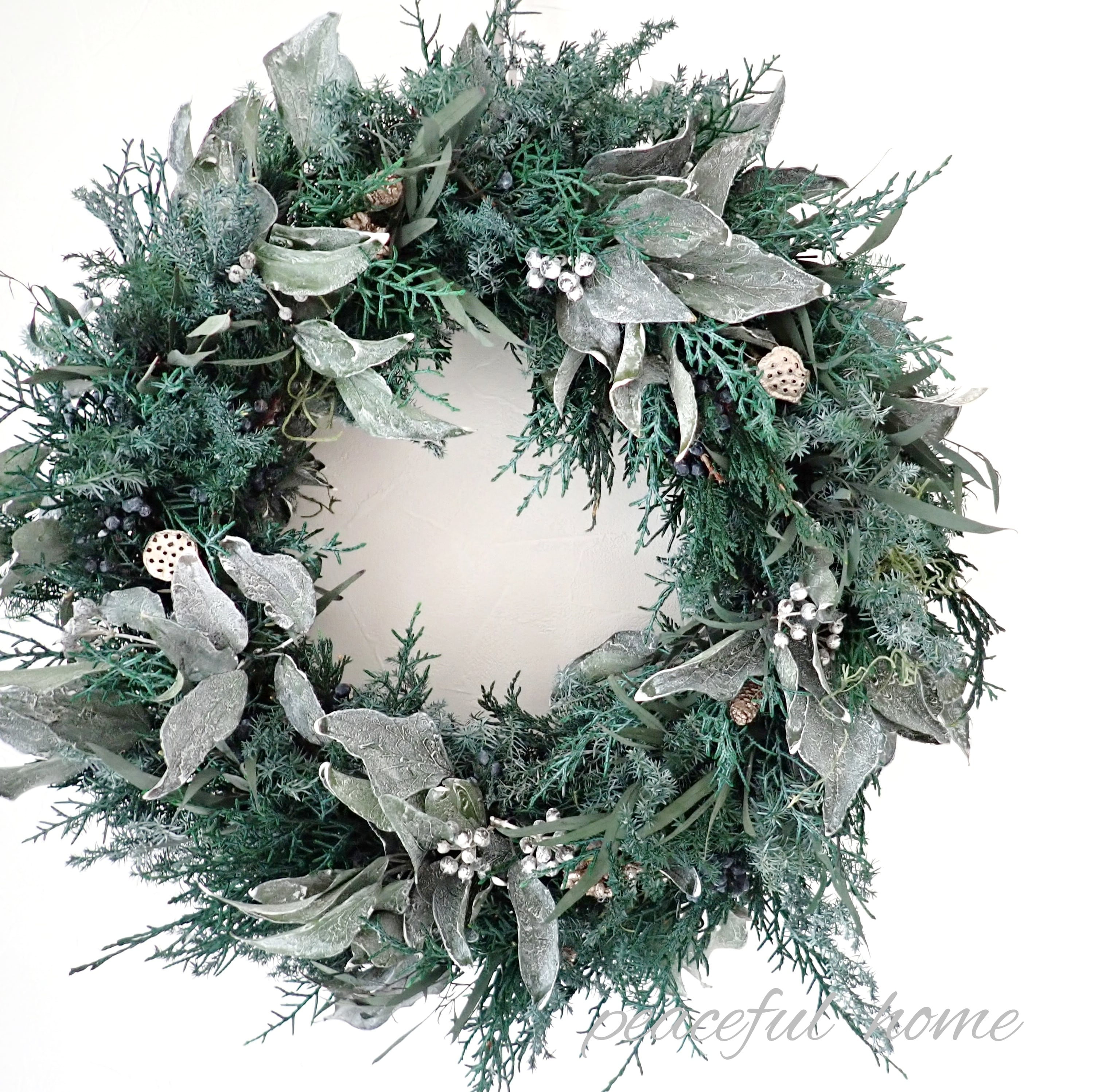 全て天然素材を使用し、針葉樹の香り漂う、ナチュラルでシンプルなクリスマスリースです。
