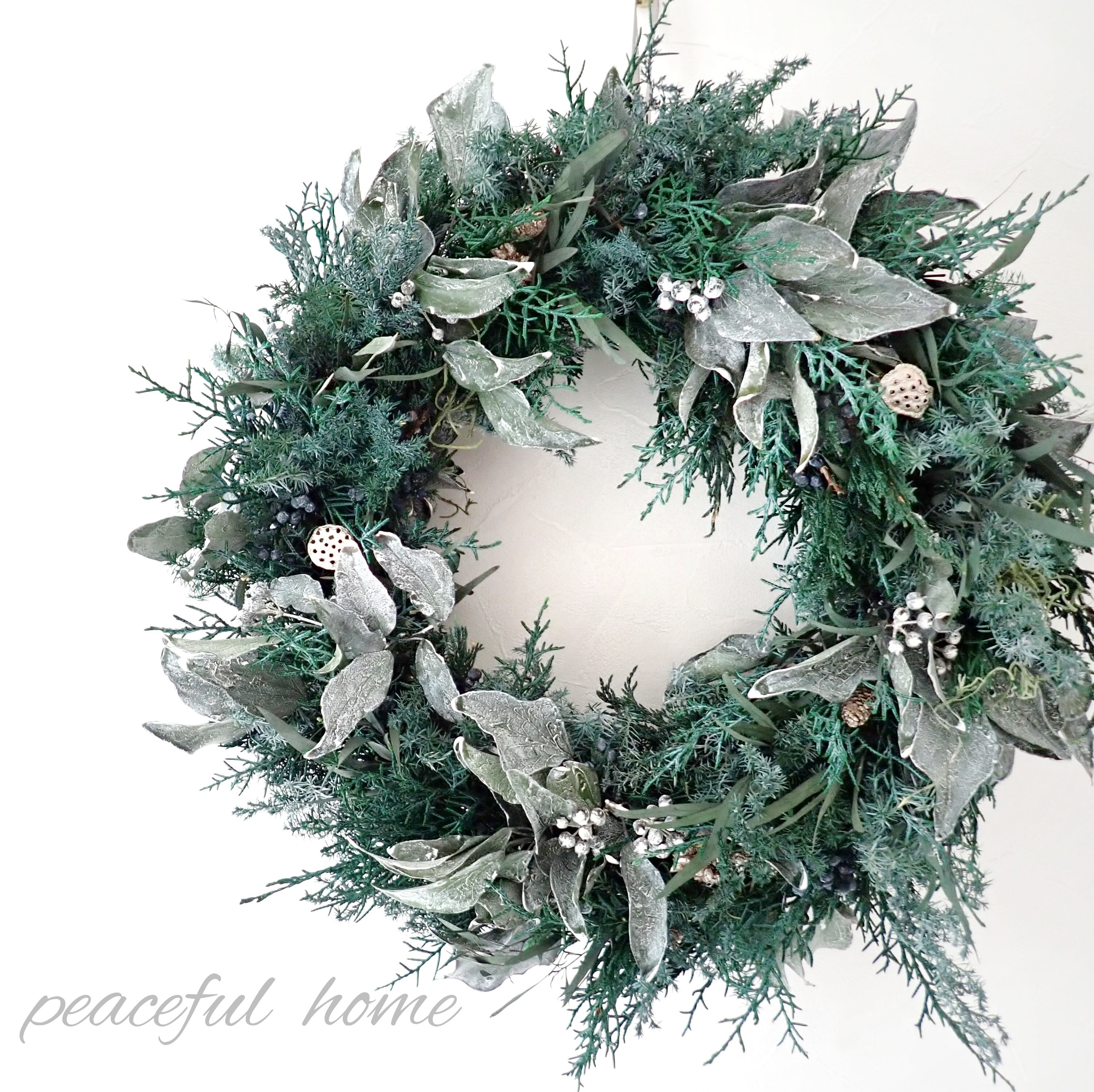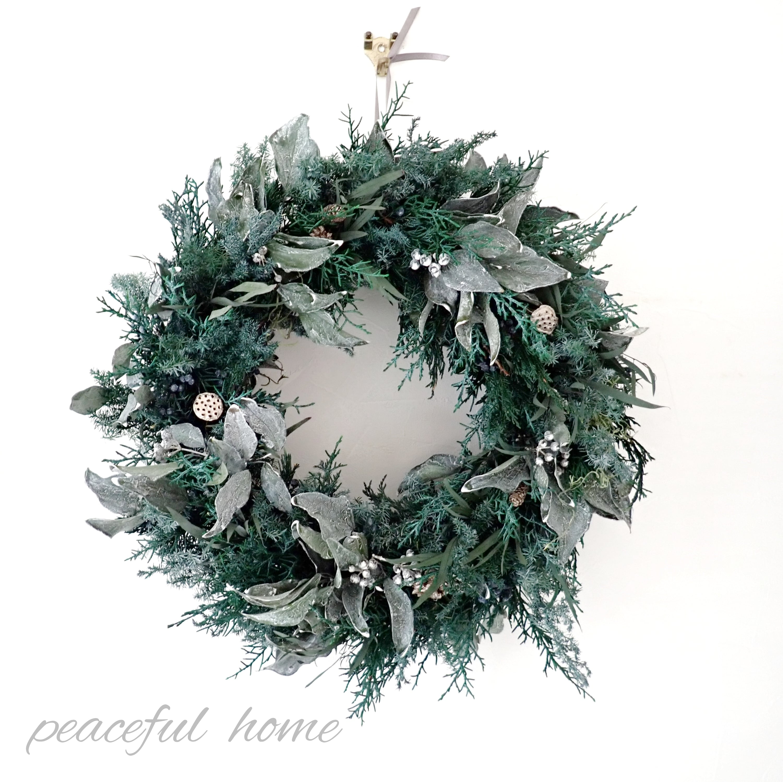 プリザーブドフラワーの大きめクリスマスリース(約38cm)で、屋内用です。